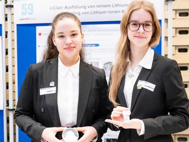 In der Sparte „Jugend forscht“ (15 bis 21 Jahre) setzten sich unter anderem Kseniia Skrynnyk und Anna Ilyushonak vom Gymnasium Schillerschule Hannover im Fachgebiet Chemie durch. Im Projekt „LiClair: Ausfällung von reinem Lithiumcarbonat im Recycling von Lithium-Ionen-Batterien“ widmeten sie sich einer zentralen Herausforderung der nachhaltigen Energieversorgung: dem effizienten Recycling von Lithium-Ionen-Batterien. Da insbesondere Lithium-Eisen-Phosphat-Batterien zunehmend eingesetzt werden, ist es entscheidend, wertvolle Rohstoffe wie Lithium in hoher Reinheit zurückzugewinnen.