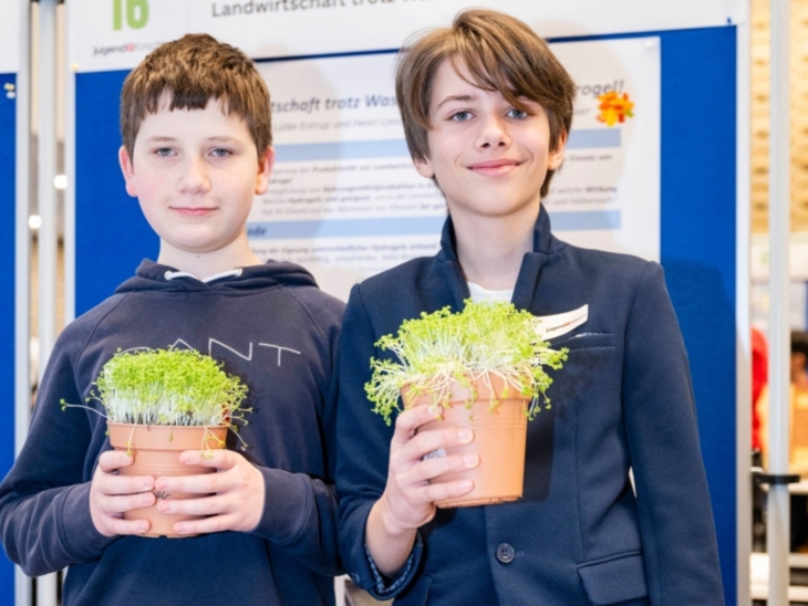 Die thematische Vielfalt zeigte sich auch bei den prämierten Projekten. Im Fachgebiet Biologie bei „Jugend forscht junior“ überzeugten unter anderem Thomas Lütke-Entrup (12) und Henri Loos (13) von der St.-Ursula-Schule Hannover. In ihrem Projekt „Landwirtschaft trotz Wassermangel – dank Hydrogel?“ untersuchten sie, ob Hydrogele die Wasserspeicherfähigkeit von Böden verbessern und so Pflanzenwachstum unter Trockenbedingungen fördern können.