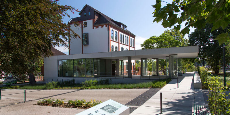 Das Gebäude ist über eine Wegachse mit der "Wand der Namen" verbunden. Auf über 3000 Tafeln sind hier Menschen mit ihren Lebensdaten verewigt, für die Ahlem eine Station in den Tod war oder die in Verantwortung der Gestapo-Außenstelle Ahlem ermordet wurden.