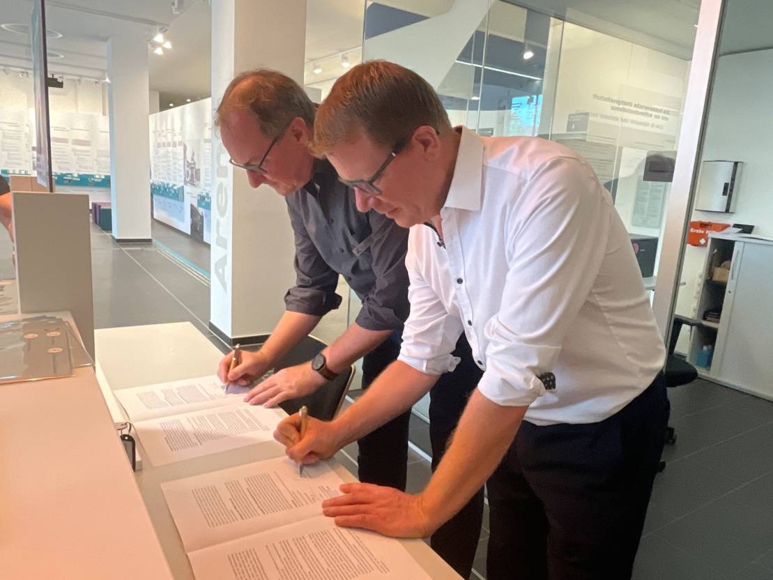 Dr. Jens Binner und Dirk Schulze beim Unterschreiben des Kooperationsvertrages