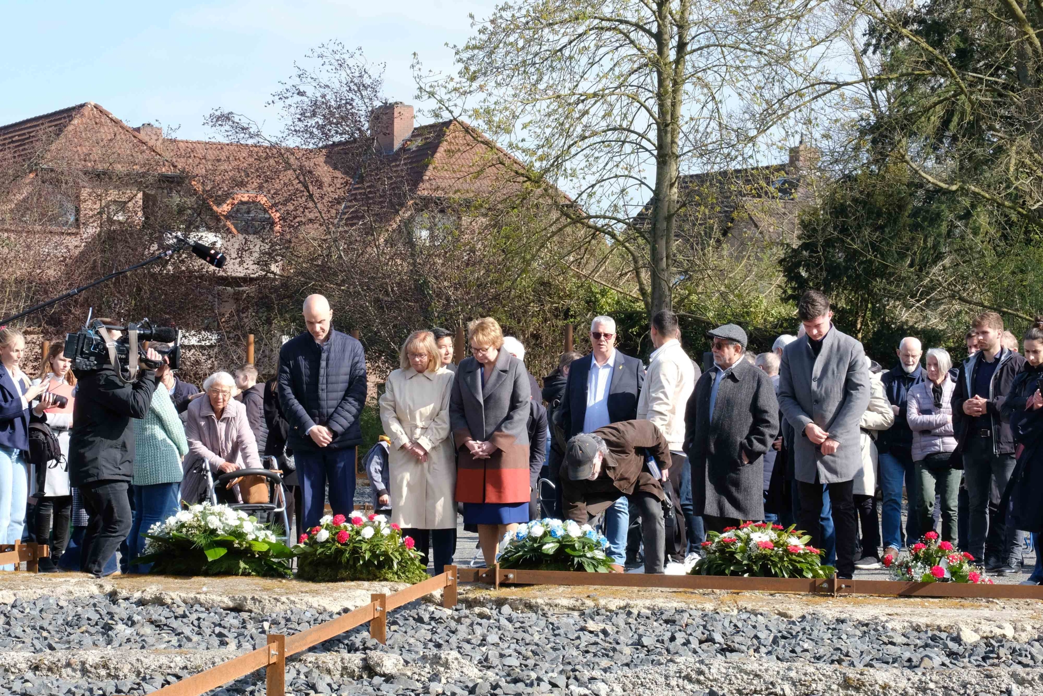 Angehörige ehemaliger KZ-Häftlinge am ehemaligen Frauen-KZ in Limmer