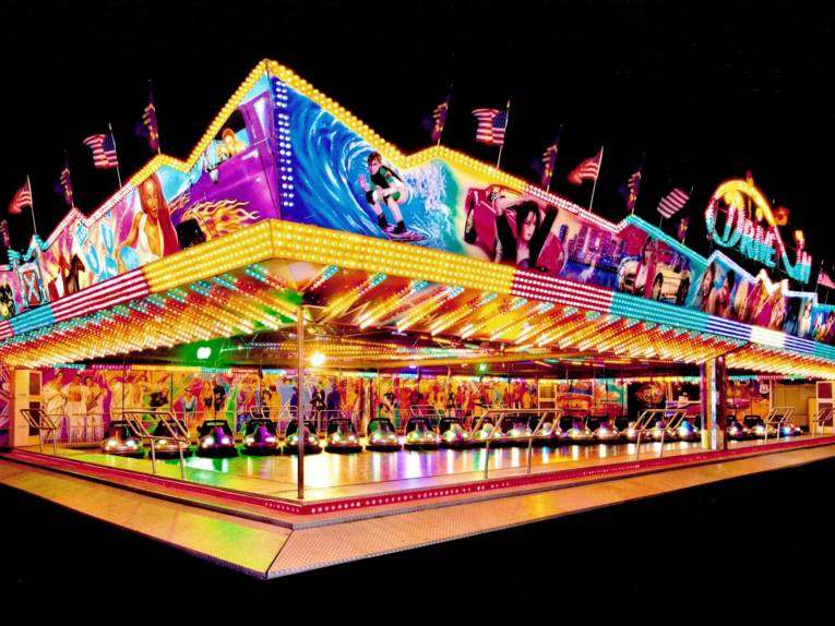 Der klassische Autoscooter lockt alle Generationen in die bunt beleuchtete Fahrarena.