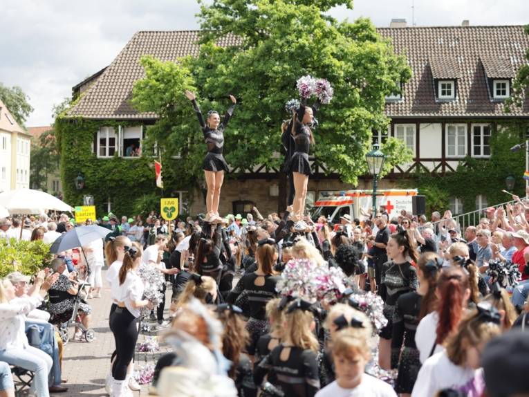 Die Tribünen am Ballhofplatz sind sehr begehrt, da man dort einen besonders guten Blick auf das bunte Treiben des Festzugs hat, der dort auch immer mal wieder anhält, um sich den Menschen zu präsentieren.