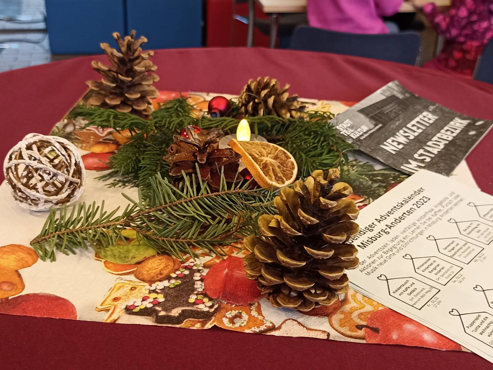 Winterliche Tischdeko im Foyer des Bürgerhauses Misburg