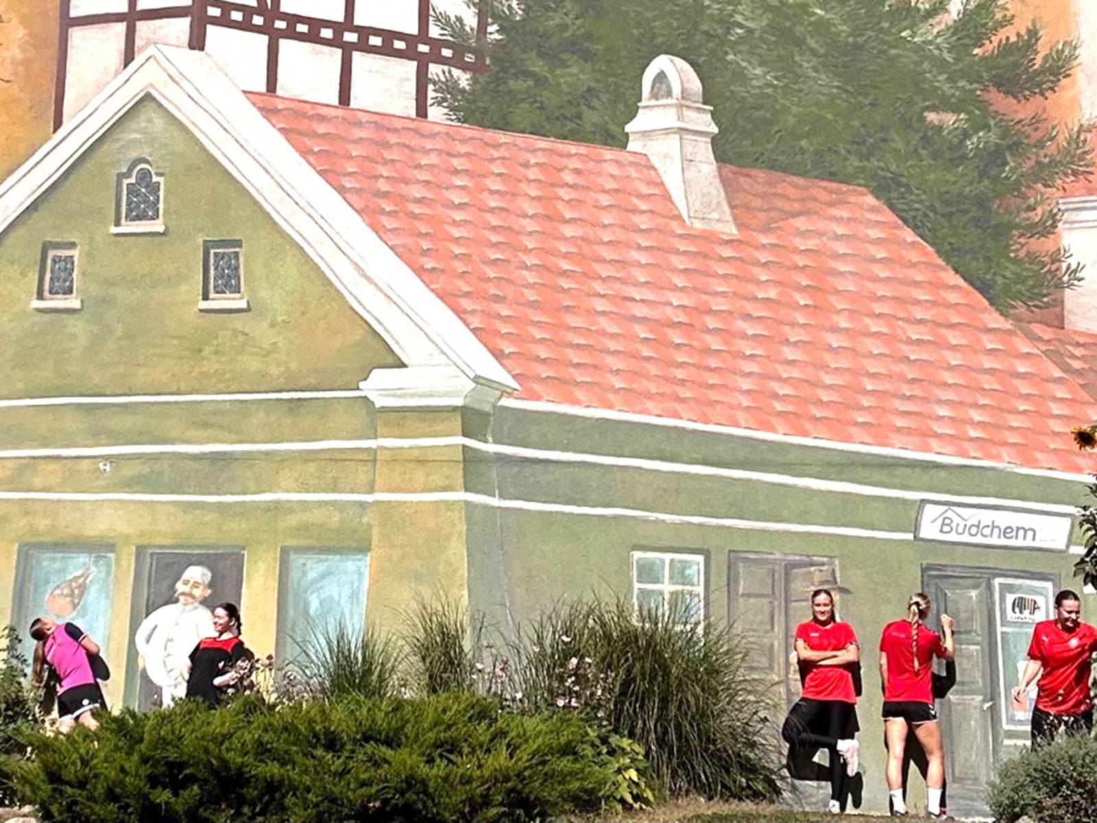 Beim Besuch Mitte August konnte die Mannschaft nicht nur in zwei knappen Spielen gegen den polnischen Zweitligisten ihr Können unter Beweis stellen. Neben dem sportlichen Wettkampf erkundete die Mannschaft die Partnerstadt bei einer Stadtrallye und trat beim gemeinsamen Bouldern mit den Gastgeberinnen in den Austausch.