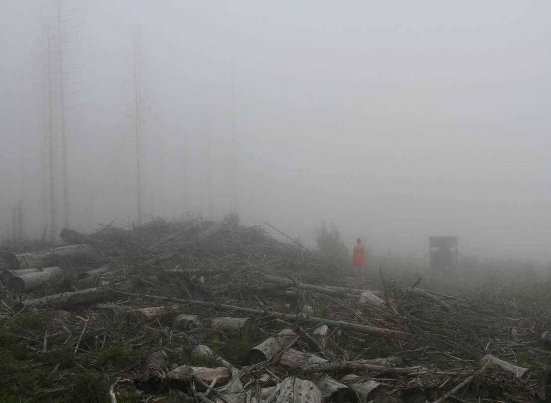 Joanna Schultes raumgreifende Installation „We’ve got to get in to get out und Außen ist das Gegenteil von Innen“ im großen Ausstellungsraum des KUBUS verschiebt die Beziehungen zwischen Natürlichkeit und Künstlichkeit, Natur und Urbanität. Ihre komplexe Installation bietet uns einen geführten Weg auf einem Wandersteg aus Holzbohlen. Im Gehen entdecken die Besucher*innen Pflanzenreste, Collagen, Graffitis, Kunststofftiere, Rastplätze, Klänge, Gerüche, Film und vieles mehr. Joanna Schulte präsentiert uns urbane Ästhetiken außerhalb der Städte. Auf ihren Wanderungen und Recherchen trifft die Künstlerin auf verlassene Architekturen, die in Besitz genommen werden durch Sprayer, Birken oder Wildkräuter. Zugleich versetzt sie in ihrer Installation Dinge aus der Natur in den Kunstraum und schafft so eine ebenso widersprüchliche wie poetische Fusion von Draußen und Drinnen, Außen und Innen. Im Gehen über ihren Steg werden wir aufgefordert über die Gegensätzlichkeit unserer Welt nachzudenken. Und letztlich auch darüber, wohin wir gehen –  zwischen Zivilisationskritik und Selbsterkenntnis.