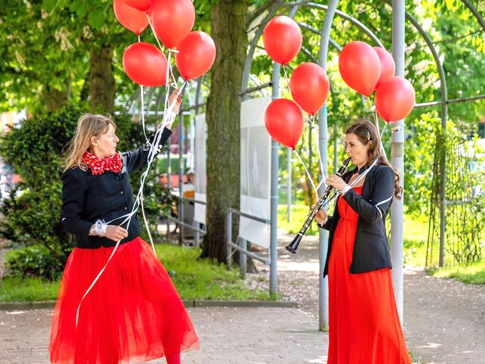 Im Rahmen der Umgestaltung der bahnhofsnahen Plätze wurde der Laubengang am Weißekreuzplatz am Samstag, dem 13. Mai zu einer Open-Air-Galerie, dessen Ausstellungsstücke sich mit Wirklichkeit und Raum auseinandersetzen. Für das Begleitprogramm "Improvisation" war Hannah Hauking (Klarinette) und Heidrun Gratzel (Tanz) von der Musikschule der Landeshauptstadt Hannover verantwortlich.