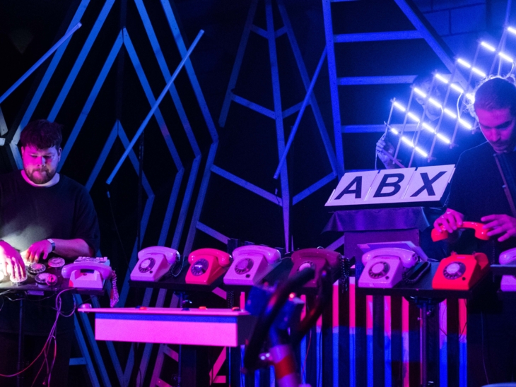 Schnarrende Plastikflaschen, rhythmisch jonglierte Tischtennisbälle und ein Telefonschlagzeug bilden das Instrumentarium für ein außergewöhnliches Klangkunstkonzert, 1.Etage - Weinbar des Freundeskreises Antike und Gegenwart, 1. Etage
