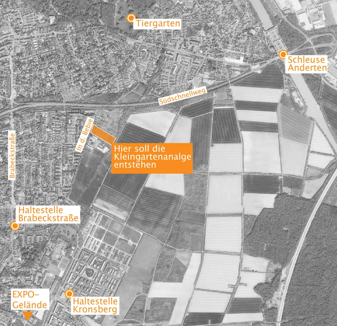 Für die wachsende Bevölkerung am Kronsberg will die Landeshauptstadt Hannover in erreichbarer Nähe zusätzliche und zeitgemäße Kleingartenangebote schaffen. Für die neue Kleingartenanlage steht eine 2,1 Hektar große Fläche an der Straße „In der Bebie“ nördlich des Kronsbergs zur Verfügung.