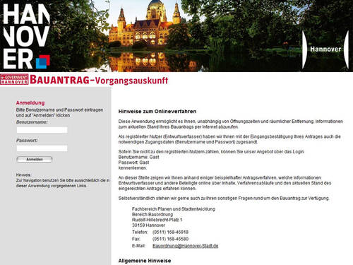 Elektronisches Bauantragsverfahren der Landeshauptstadt Hannover und Infos über Baugebiete
