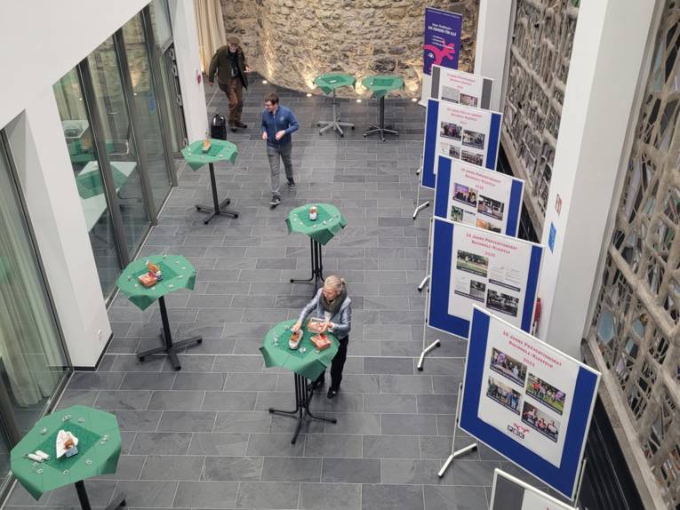Veranstaltungsraum mit Projektausstellung vor Beginn des Jubiläums