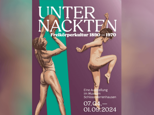 Im Schloss Herrenhausen präsentierten HMH, Stadtarchiv und NISH im Sommer 2024 Bilder und Dokumente zur Geschichte der Freikörperkultur in Hannover