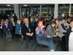60 Gäste folgten unserer Einladung und erfreuten sich am Programm, an Getränken und Buffet und an der großzügigen schönen Stadtteilbibliothek.