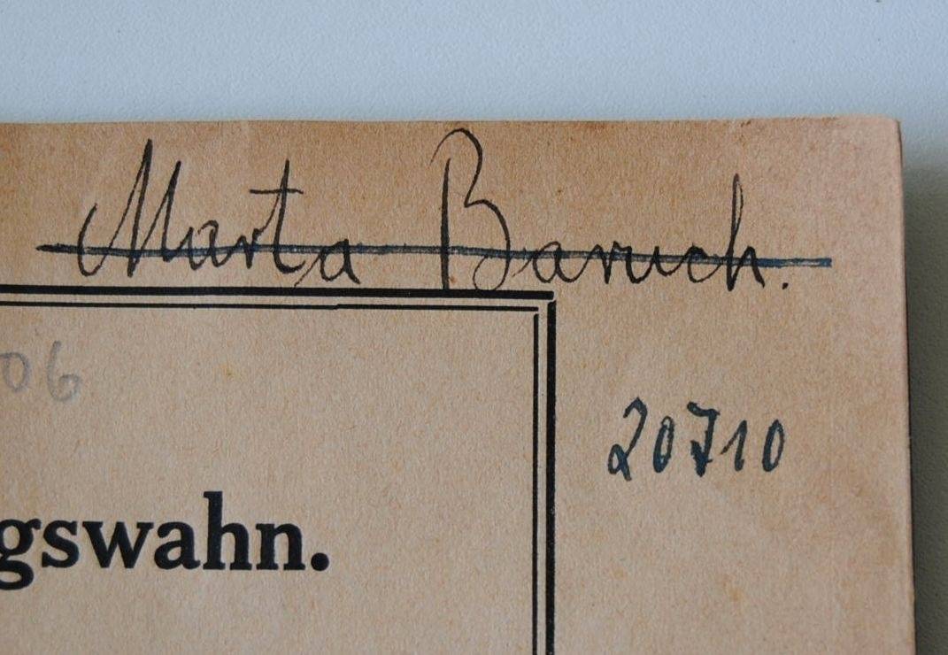 In dem Band fand sich das Autogramm "Marta Baruch". Aufgrund eines Schriftvergleichs des Autogramms mit einem handgeschriebenen Brief Marta Galleys (geb. Baruch) aus dem Jahr 1939 konnte sie als Eigentümerin der Broschüre identifiziert werden.