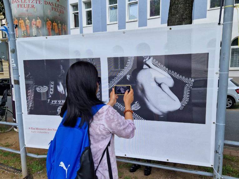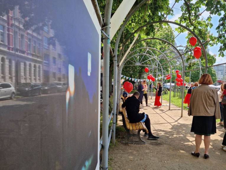Im Rahmen der Umgestaltung der bahnhofsnahen Plätze wurde der Laubengang am Weißekreuzplatz am Samstag, dem 13. Mai zu einer Open-Air-Galerie, dessen Ausstellungsstücke sich mit Wirklichkeit und Raum auseinandersetzen. Für das Begleitprogramm "Improvisation" war Hannah Hauking (Klarinette) und Heidrun Gratzel (Tanz) von der Musikschule der Landeshauptstadt Hannover verantwortlich.