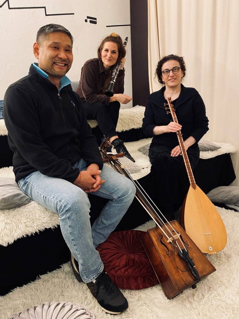 Impulse und Probenvorbereitung kommen vom transkulturell orientierten Team der Musikschule, bestehend aus den Musiklehrer*innen Hannah Heuking, Zeynep Irmak und Naranbaatar Purevodorj.