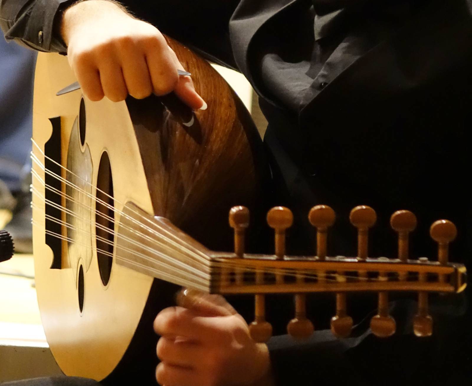 Die nahöstliche Oud gilt als Vorgänger der europäischen Laute. Eine Besonderheit der Oud ist, dass die 11 Saiten ohne Bünde aufgezogen sind, man kann also auch Vierteltöne und viele Verzierungen spielen.