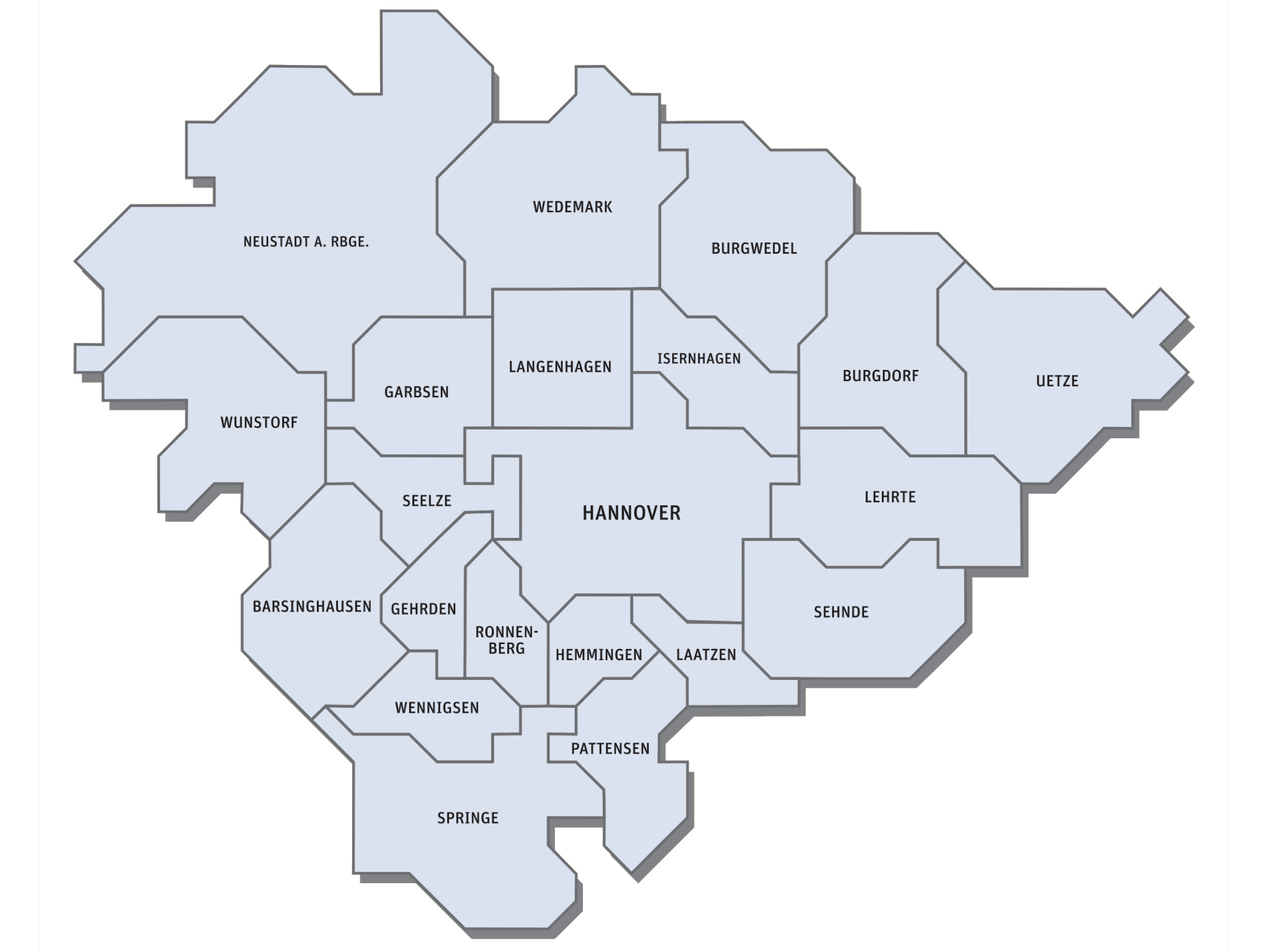 Die Landeshauptstadt Hannover sowie die Städte Laatzen, Langenhagen, Garbsen, Hemmingen, Seelze und Wunstorf sowie die Gemeinden Isernhagen und Wedemark gehören danach zu den Gebieten mit einem angespannten Wohnungsmarkt gem. § 556d BGB.
