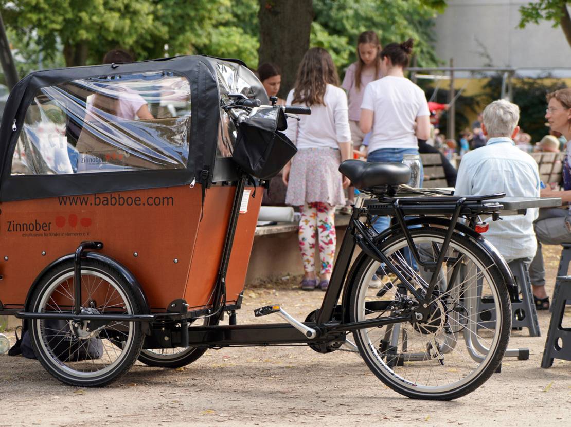 Wenn nicht gerade der Innenstadtdialog stattfindet, fährt das Kulturfahrrad Zinnober nachmittags bei schönem Wetter ein– bis zweimal wöchentlich auf Spielplätze in den Stadtteilen rund um den Standort des Kindermuseum Zinnober in Linden.
