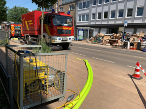 Die Feuerwehr Hannover beseitigt zusammen mit der Feuerwehr Euskirchen die durch die Unwetterkatastrophe entstandenen Schäden.
