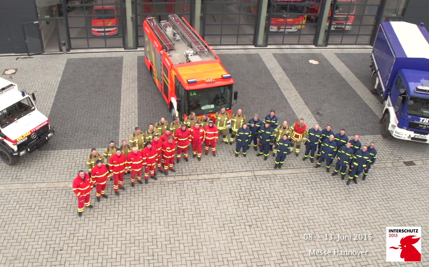 Rund 100 Angehörige von Feuerwehr, Rettungsdienst und Katastrophenschutz weisen anlässlich der 112 noch verbleibenden Tage bis zur INTERSCHUTZ 2015 in einem Video auf das Großereignis hin. Unter dem Motto "„Wir sind dabei – wo bleibst Du?" rufen sie in einer spontanen Aktion ihre Kollegen auf der ganzen Welt zum Treffen in Hannover auf.