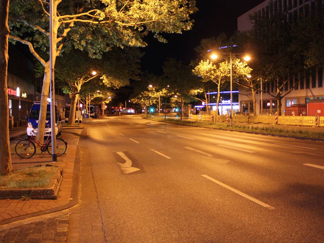 Die menschenleereHildesheimer Straße gegen 22:15 Uhr