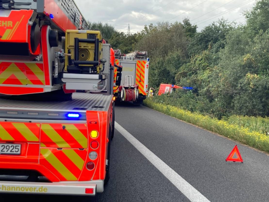 Gegen 14:35 Uhr transportierte ein Rettungswagen einen Patienten von Altwarmbüchen zum Nordstadtkrankenhaus nach Hannover. Auf der Fahrt zwischen den Anschlussstellen Hannover-Bothfeld und Hannover-Nord kam das Fahrzeug nach rechts von der Fahrbahn ab, prallte gegen ein Verkehrsschild, fuhr die etwa drei Meter tiefe Böschung herab und blieb nach etwa 150 Metern in der dicht bewachsenen Böschung stehen. Der Patient sowie die ihn begleitende Notfallsanitäterin waren im Patientenraum eingeschlossen. Der 41-jährige Fahrer setzte einen Notruf ab und konnte das Fahrzeug unverletzt verlassen.