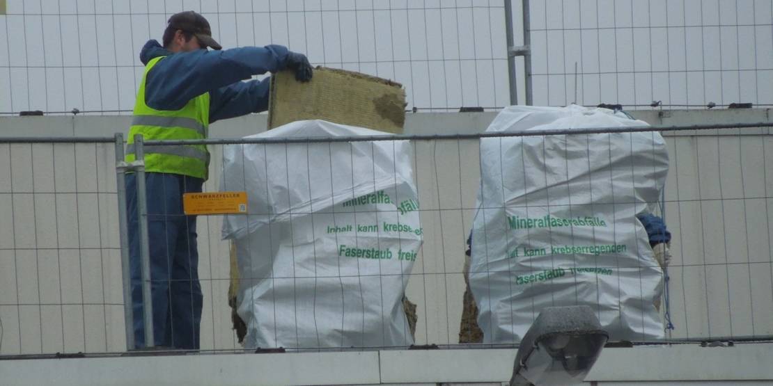 Bei der Entsorgung wird nicht mehr zwischen „alter“ und „neuer Mineralwolle“ unterschieden. Beide Arten von Mineralfaserabfällen werden als gefährlicher Abfall erfasst und gemeinsam entsorgt.