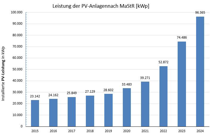 Um Treibhausgasneutralität 2035 erreichen zu können, wurde im Klimaschutzprogramm 2035 der Landeshauptstadt Hannover das Ziel definiert, die installierte PV-Leistung nach Möglichkeit auf 800 Megawatt (MW) zu erhöhen. Ende 2023 waren im Stadtgebiet von Hannover 4.648 PV-Anlagen mit einer Leistung von 65,7 MW beim Netzbetreiber registriert. Damit sind etwa 8,2 % des angestrebten Ziels erreicht.