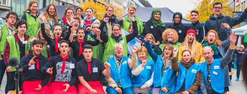Im Mittelpunkt stand dabei eine zentrale Aktion am 14. September auf dem Kröpcke. Zum offiziellen Auftakt der Fairen Woche in Hannover kamen rund 400 Besucherinnen und Besucher auf den Kröpcke. Schulen boten fair gehandelte Snacks an. Und selbstverständlich gab es Informationen zu fairen Produkten und dem Fairen Handel allgemein. Verschiedene Organisationen und Einrichtungen stellten ihre Arbeit rund um das Thema gerechter Handel und nachhaltige Lebensstile vor. An den Ständen des Agenda 21- und Nachhaltigkeitsbüros, des Vereins Entwicklungspolitik Niedersachsen oder des Wissenschaftsladens konnten sich die Gäste informieren und kleine Snacks probieren.