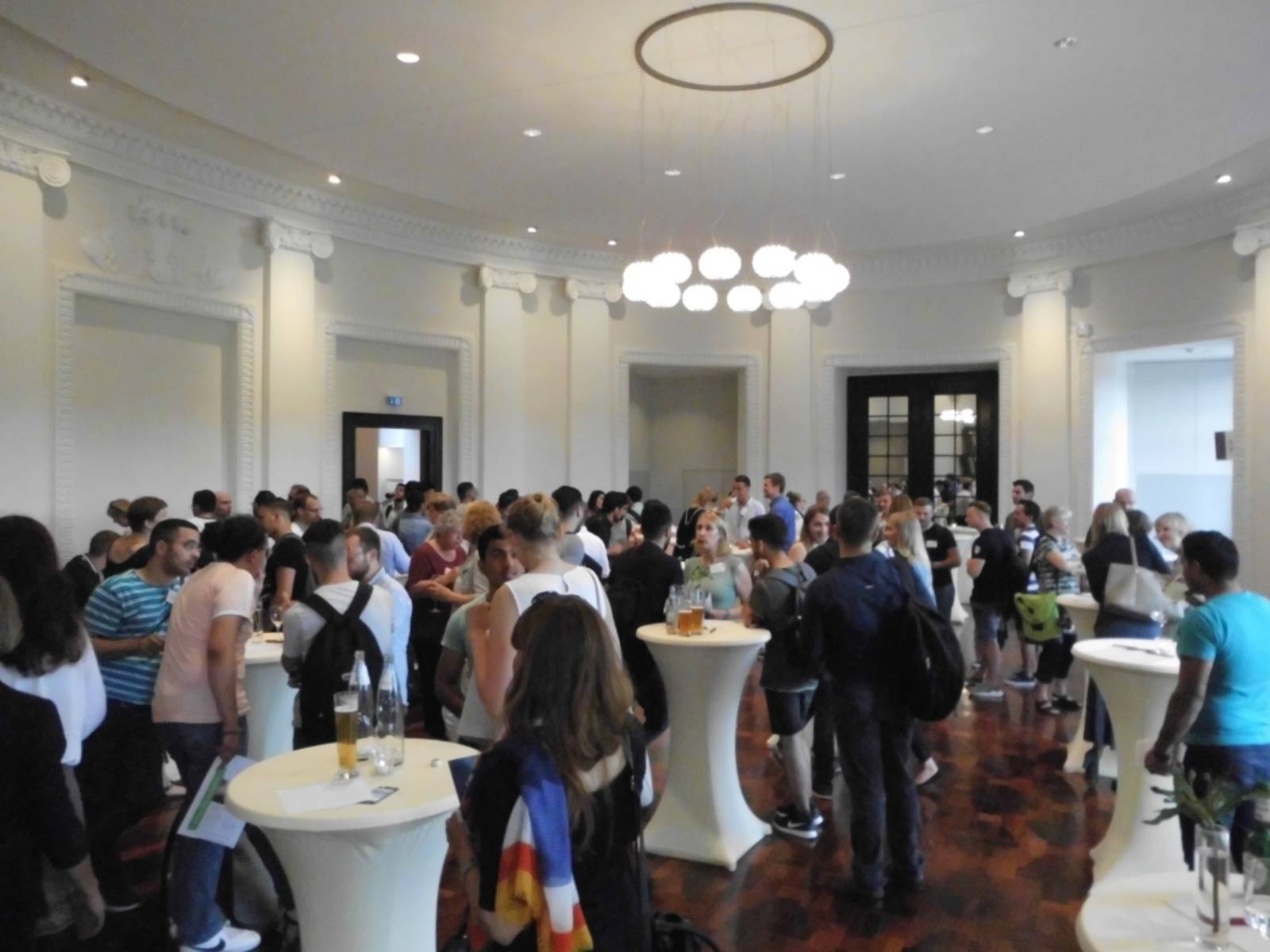 Barrieren abbauen und ein einfacher Kontakt auf Augenhöhe – Das sollte ein Get-together von Geflüchteten und Vertreterinnen und Vertretern der Hochschulen, Wirtschaft und Verwaltung ermöglichen.
