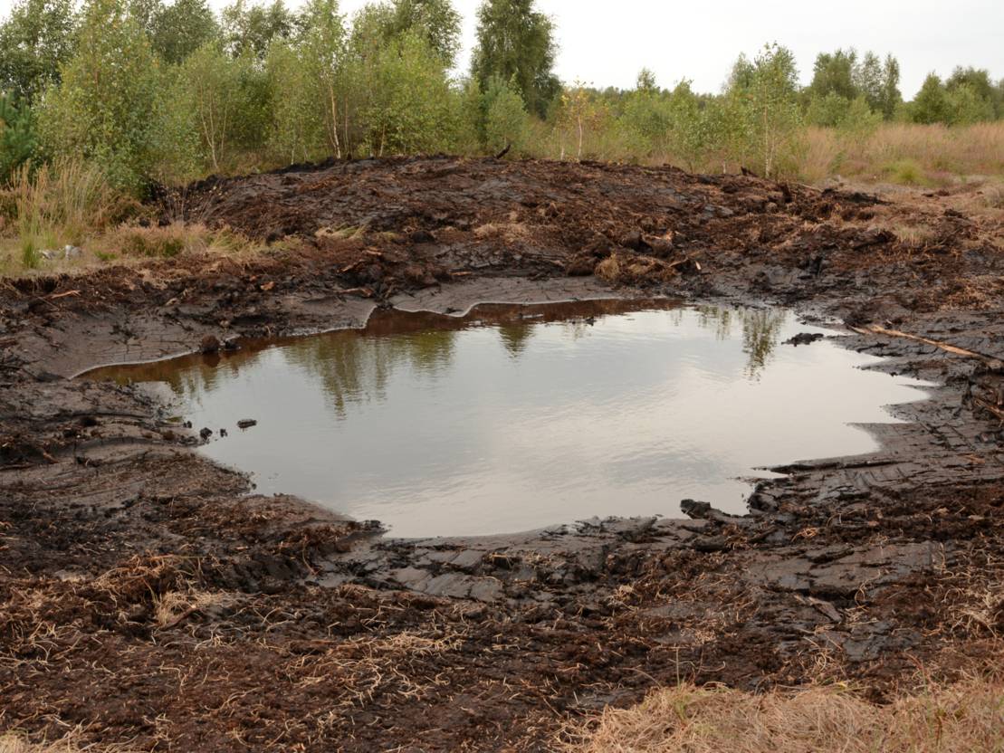Um diese Vielfalt wieder herzustellen, werden die bislang einförmigen Abbauflächen modelliert und Bereiche sowohl tiefer als auch höher gelegt. Somit können unterschiedliche Wasserstände innerhalb einer Fläche entstehen und damit auch unterschiedliche Lebensraumstrukturen. Besonders auf zu trockenen Flächen sollen Senken angelegt werden, die dauerhaft Wasser führen und damit einen Lebensraum für im Wasser lebende Arten bieten. Auf überstauten Flächen wird mit der Einbringung von Baumstämmen und Reisig gearbeitet. Dies soll zu einer Wasserberuhigung führen, wodurch die Verlandung (natürliches Zuwachsen einer Wasserfläche bis hin ihrem vollständigen Verschwinden) und Entwicklung als wachsendes Moor ermöglicht wird. Gleichzeitig werden durch die Entnahme von Birken an anderer Stelle Moorflächen offen gehalten.