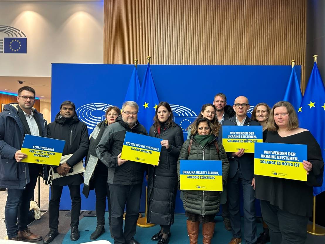 1000 Tage Krieg: in Brüssel setzen Mitglieder des Internationales Ausschusses der Landeshauptstadt Hannover ein Zeichen der Solidarität.