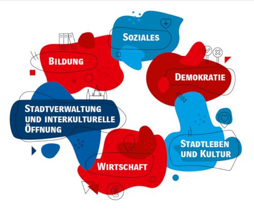 Bildung | Soziales | Demokratie | Stadtleben und Kultur | Wirtschaft | Stadtverwaltung und interkulturelle Öffnung