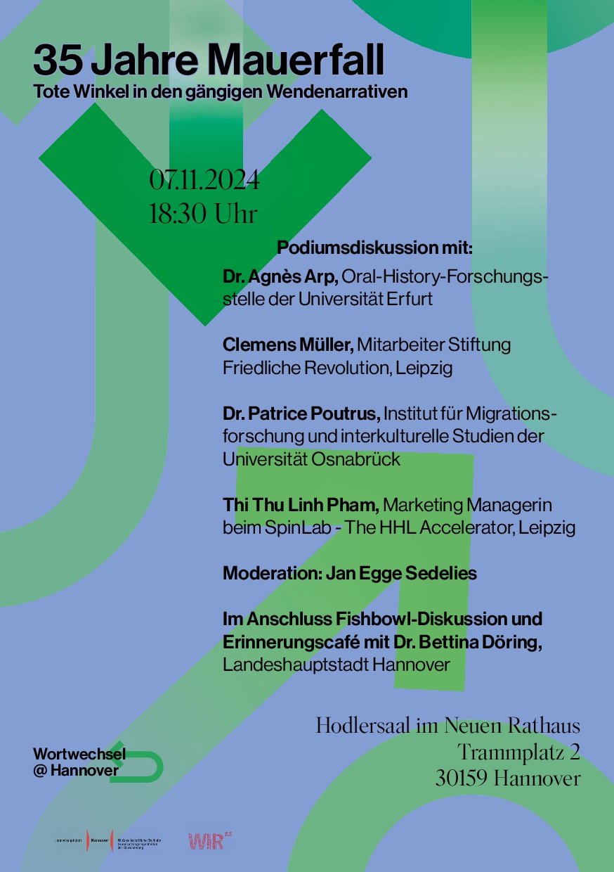 Um Perspektiven auf den Mauerfall, die in den Erzählungen noch nicht so häufig vorkommen, geht es am Donnerstag, 7. November 2024, bei einer Diskussion im Hodlersaal des Neuen Rathauses.