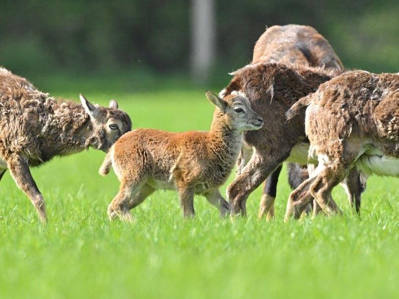 Beim Muffelwild (Ovis musimon, auch Mufflon genannt), weisen die Böcke (Widder) schneckenförmig eingedrehte, bis 80 Zentimeter lange Hörner auf. Die Weibchen haben, je nachdem von welcher Stammform sie kommen, keine oder nur kleine Hörner, die nach hinten gebogen sind. Auffällig ist der Sattelfleck und der helle Spiegel, wobei nur der Widder den Sattelfleck besitzt. Die Tiere erreichen eine Schulterhöhe von bis zu 90 Zentimetern und ein Gewicht von bis zu 55 Kilogramm (männliche Tiere). Das Mufflon gehört zu der Art der Wildschafe, nicht zu verwechseln mit dem Steinbock oder dem Gamswild. Die Tiere leben in kleinen Rudeln zusammen. Die Widder bilden dabei eigene kleine Rudel und gesellen sich zur Paarungszeit wieder zusammen. Die Tiere, die heute in Deutschland leben, wurden erst zu Beginn des 19. Jahrhunderts in Schlesien und in dem Thüringer Teil des Harzes ausgewildert. Muffel sind die weltweit kleinsten Wildschafe und stammen vermutlich aus Vorderasien. Um 7.000 vor Christus wurde die Wildart vom Menschen auf den Mittelmeerinseln Korsika und Sardinien eingeführt.