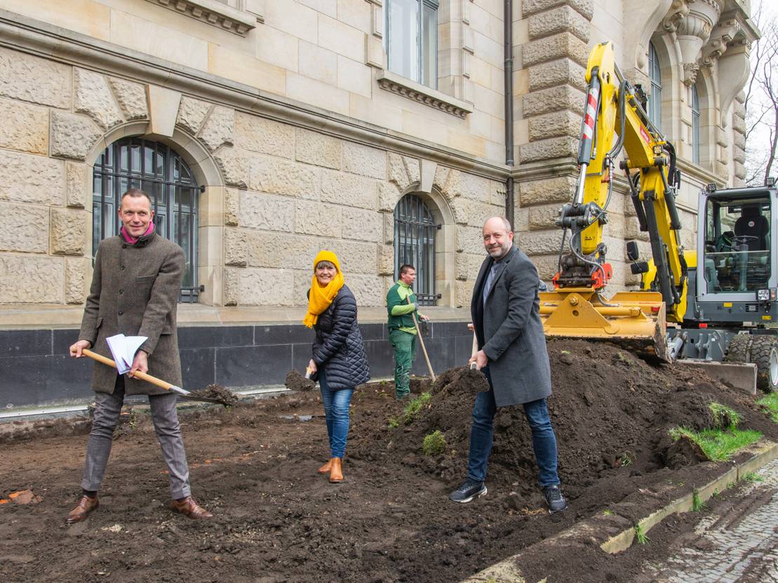 "Besucher*innen und Mitarbeitende des Rathauses können sich künftig über eine vielfältige, blühende Blumenpracht freuen, die zu jeder Jahreszeit besondere Blickfänge bietet", betonte Prof. Dr. Lars Baumann zu Beginn der Arbeiten. "Das Entree unseres imposanten Neuen Rathauses erfährt durch die repräsentative Bepflanzung eine gestalterische Aufwertung, zugleich leisten wir damit einen Beitrag zum Arten- und Insektenschutz."