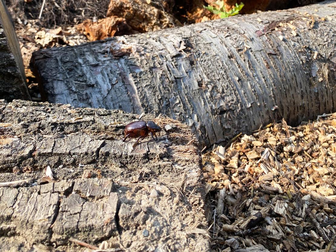 Erste Nashornkäfer finden auf den neuen Habitaten am Vierthalerteich in der „Käferburg“ ein neues Zuhause.