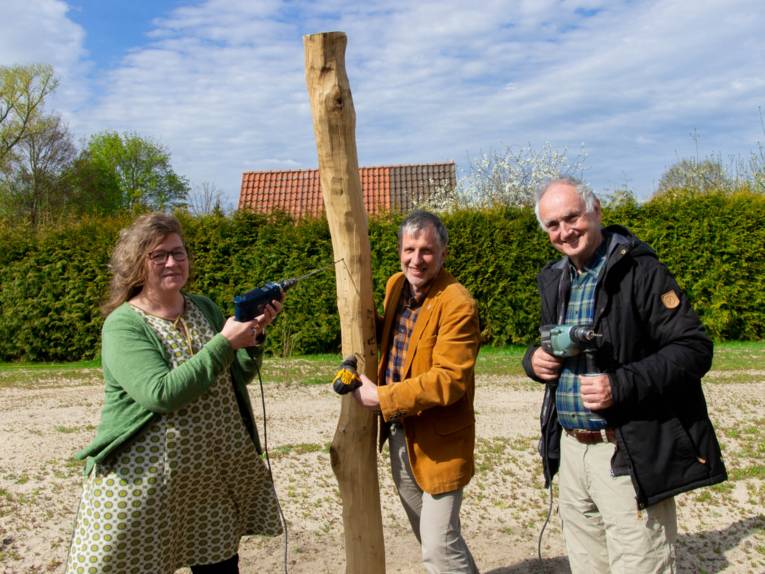 Für die oberirdischen Nestbauer*innen wurden Baumstämme angebohrt und Totholz eingebracht. Des Weiteren sollte die angrenzende Wildblumenwiese zurückgeschnitten werden. Auch Infoschilder und Erläuterungstafeln wurden von den Jugendlichen gestaltet und angebracht. Schließlich sollen mit diesem Modellgarten nicht nur die Kleingärtner*innen der Kolonie Dornröschen zur Nachahmung motiviert werden.