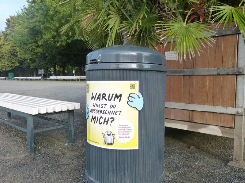 Zunächst werden rund 600 Müllbehälter im Stadtgebiet (Eilenriede, Maschpark, am Maschsee Nord- und Westufer und am Leine- und Ihmeufer) beklebt. Darauf betonen elf kurze und prägnante Slogans augenzwinkernd das Anliegen, indem sie die Nutzer*innen direkt ansprechen. Unter anderem heißt es dort: "Sorry, ich bin schon vergeben!" oder eben "An Fastfood hab` ich immer schwer zu schlucken." "Wenn jede*r rücksichtsvoll und umsichtig handelt, dann haben alle etwas davon. Das zeigt sich besonders deutlich beim Thema Müll. Überquellende Behälter oder achtlos weggeworfener Müll können ganze Grünflächen so stark beeinträchtigen, dass es keinen Spaß mehr macht, sich dort aufzuhalten. Dann leidet nicht nur die Erholungsqualität, umherfliegender Müll schadet auch Natur und Umwelt", so Manuel Kornmayer.