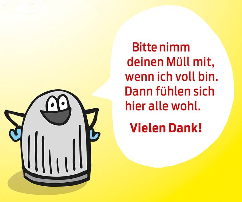 Daher die Bitte an alle Freiluftfans: Sind die Müllbehälter voll, nehmen Sie Ihren Müll mit zu einem anderen freien Mülleimer oder nach Hause. Bitte stellen Sie nichts daneben oder stapeln Sie nichts auf die Behälter- Ein Windstoß und der Stapel verteilt sich im Grünen.