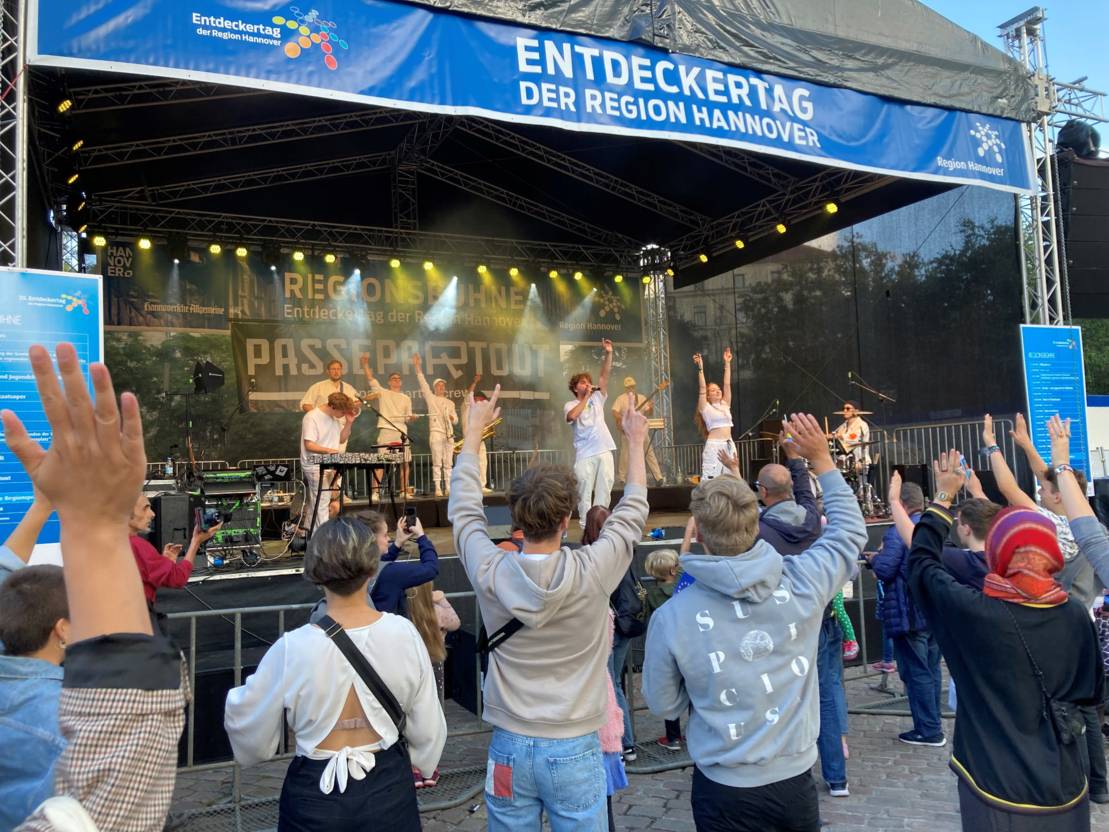 Am Kröpcke begeisterten unter anderem das Brudy-Ensemble, Singer-Song-Writerin Sobi und die Band Makatumbe das Publikum. Auf der Regionsbühne brachten schon am Vormittag die Ellingtones das Publikum gut gelaunt zum Swingen. Am Nachmittag übernahm das Saxophonquartett Sistergold das Kommando, und am Abend heizten schließlich Terry Hoax dem Publikum ein. Richtig voll wurde es zwischendurch, als die Wandergruppe aus Pattensen, Hemmingen und Laatzen die Bühne enterte. Die Gruppe war um 10 Uhr in Pattensen gestartet und erreichte den Opernplatz kurz vor 15 Uhr.