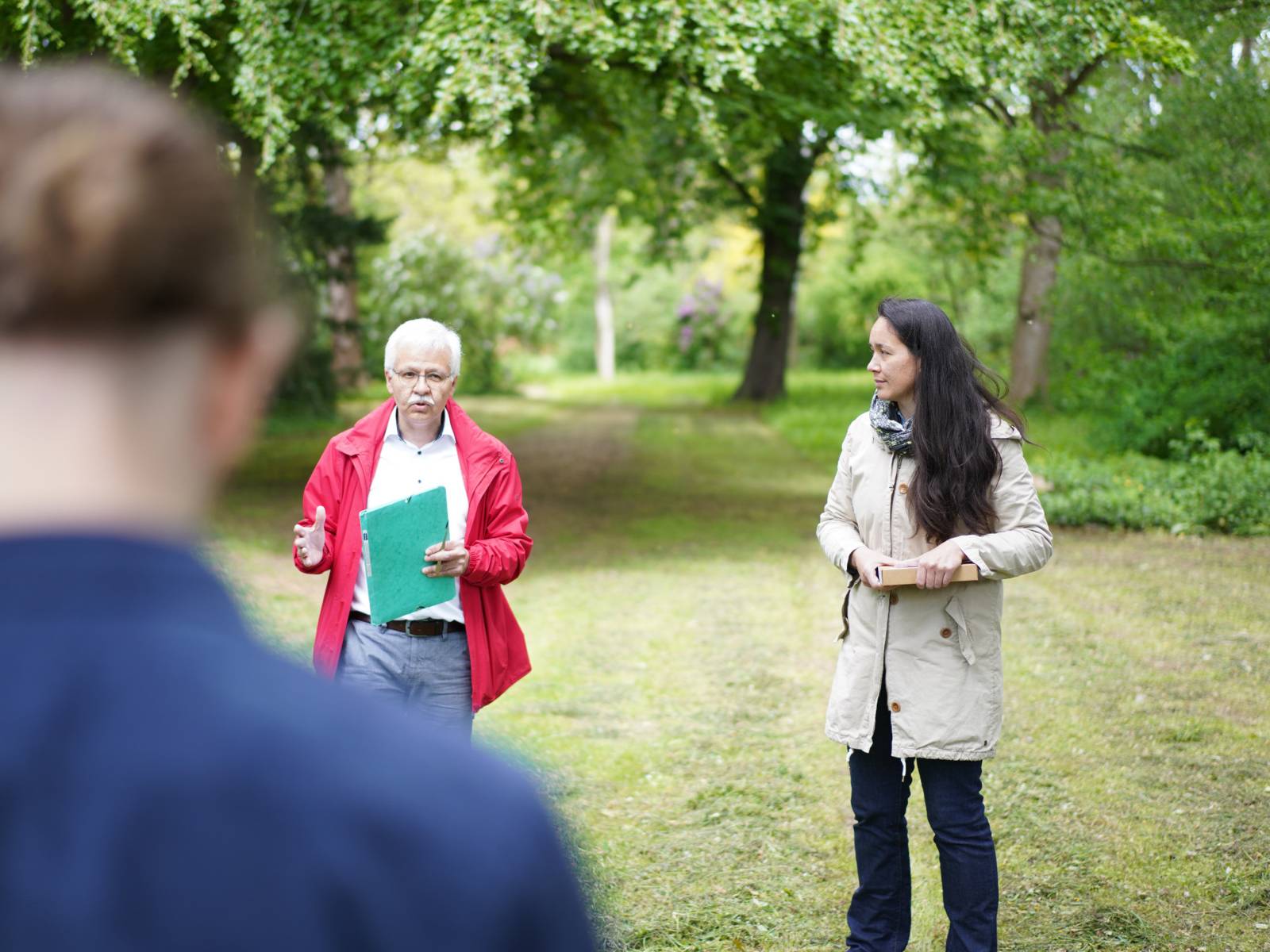 Dr. Masyar Monazahian vom Niedersächsischen Landesgesundheitsamt und Bettina Wilhelm vom Fachbereich Gesundheit der Region Hannover klären über Zecken auf und erläutern den Vorgang des Flaggens.