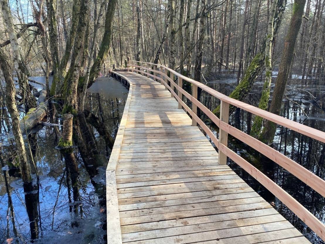 Durch die erfolgreiche Wiedervernässung des Moores war der große Rundweg zuletzt nicht mehr vollständig begehbar: Ein Abschnitt des Holzhackschnitzelwegs durch den Wald stand dauerhaft unter Wasser. Zwischenzeitlich wurde daher eine Umleitung eingerichtet. Durch den ehrenamtlichen Einsatz des NABU Wedemark kommen Besucher*innen jetzt auch auf dem regulären Pfad wieder trockenen Fußes durchs Moor. In den vergangenen Monaten haben die Helfer*innen einen neuen Holzsteg über den überfluteten Bereich errichtet. Die Kosten für das Baumaterial hat die Region Hannover übernommen.