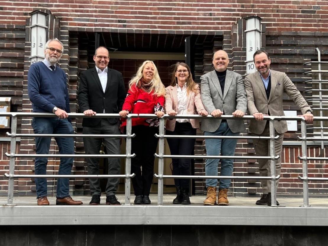 V.l.n.r.: Martin Buck, stellvertretender BBS-Schulleiter, Bildungsdezernent Ulf-Birger Franz, Nicolé Heidorn, Leiterin des Fachbereichs Bildung und Kultur der Region Hannover, BBS-Schulleiterin Monika Höving-Gevers, Klosterkammerdirektor Dr. Matthias Nagel und Till Rathmann, Geschäftsführer der AHK Grundbesitz GmbH.