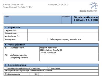 Bearbeitbare Vorlage zur Abnahme von Bauleistungen als Anlage
