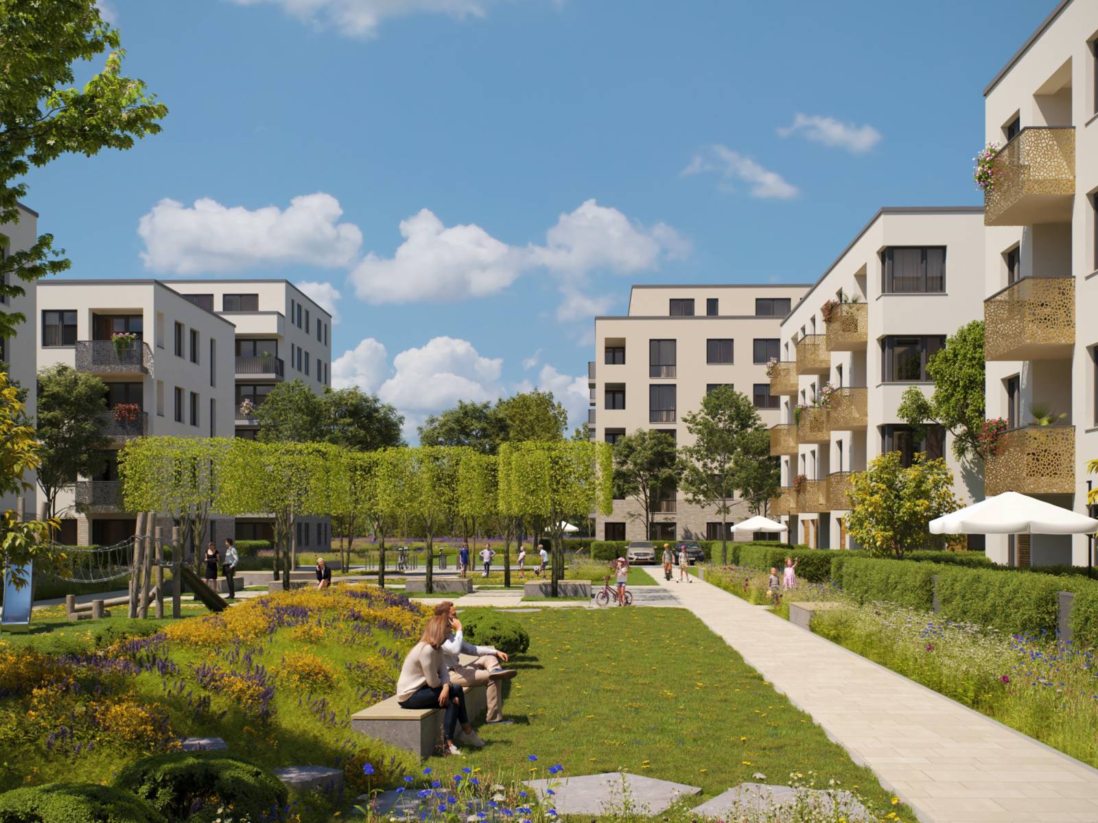 Das bisher weitestgehend versiegelte Grundstück wird mit einem kleinen Park, einem Quartierplatz, zahlreichen Spielflächen und einer nahezu vollständigen Dachbegrünung auch ökologisch deutlich aufgewertet.