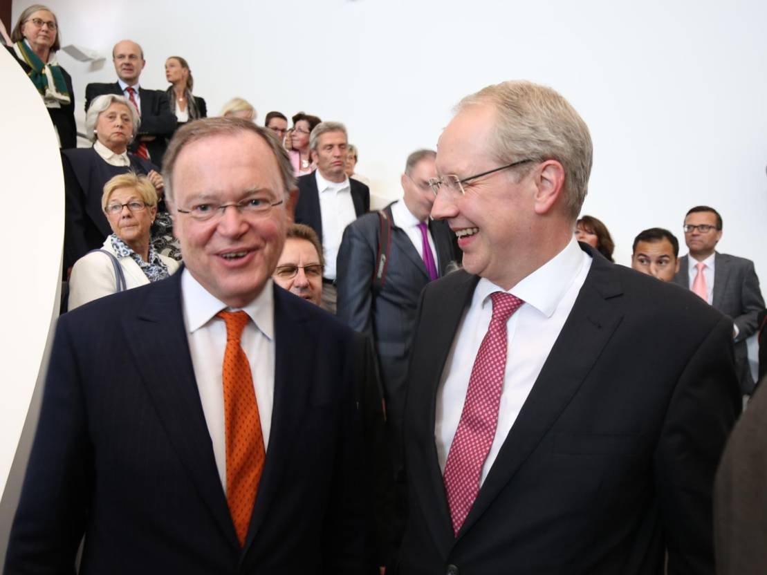 MP Weil und OB Schostok © LHH (Christian Burkert) Ministerpräsident Stephan Weil und Oberbrürgermeister Stefan Schostok beginnen den Rundgang durch den Erweiterungsbau