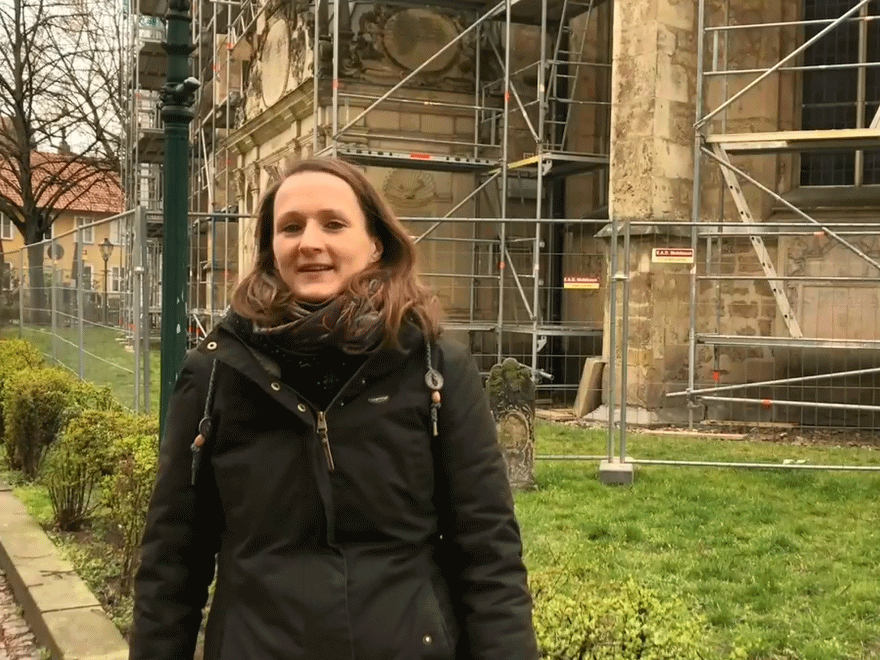 Karolin Quambusch erzählt Interessantes über die Kreuzkirche in der Altstadt von Hannover.