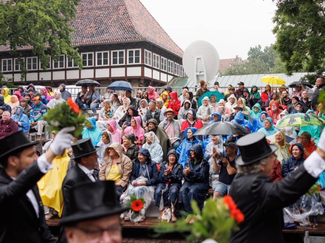 Schützenausmarsch 2024 (5): Publikum © Ole Spata Trotz des Regens kamen wieder zahlreiche Menschen zum Ballhofplatz und verfolgten den Ausmarsch.